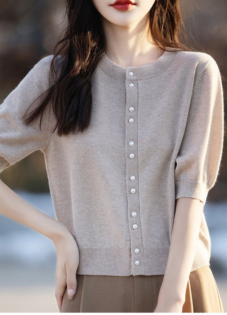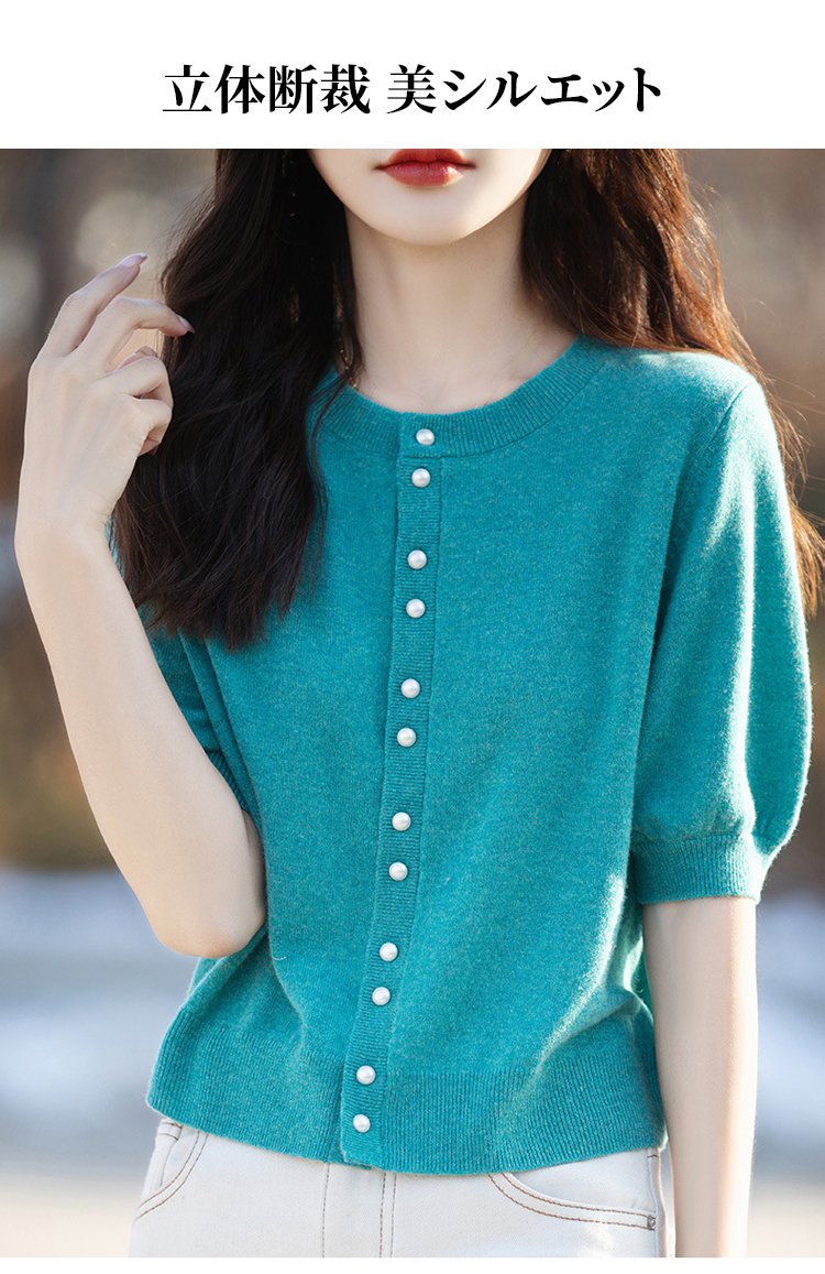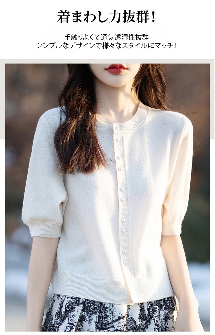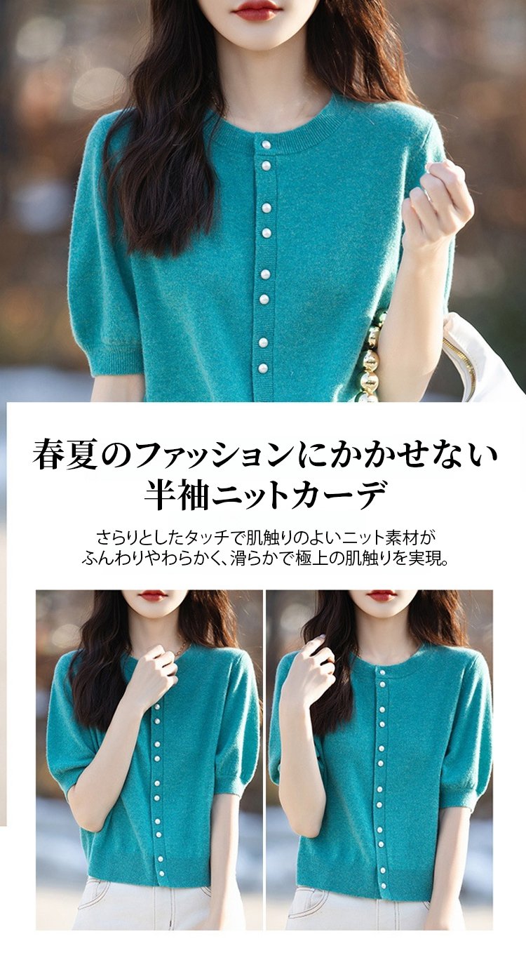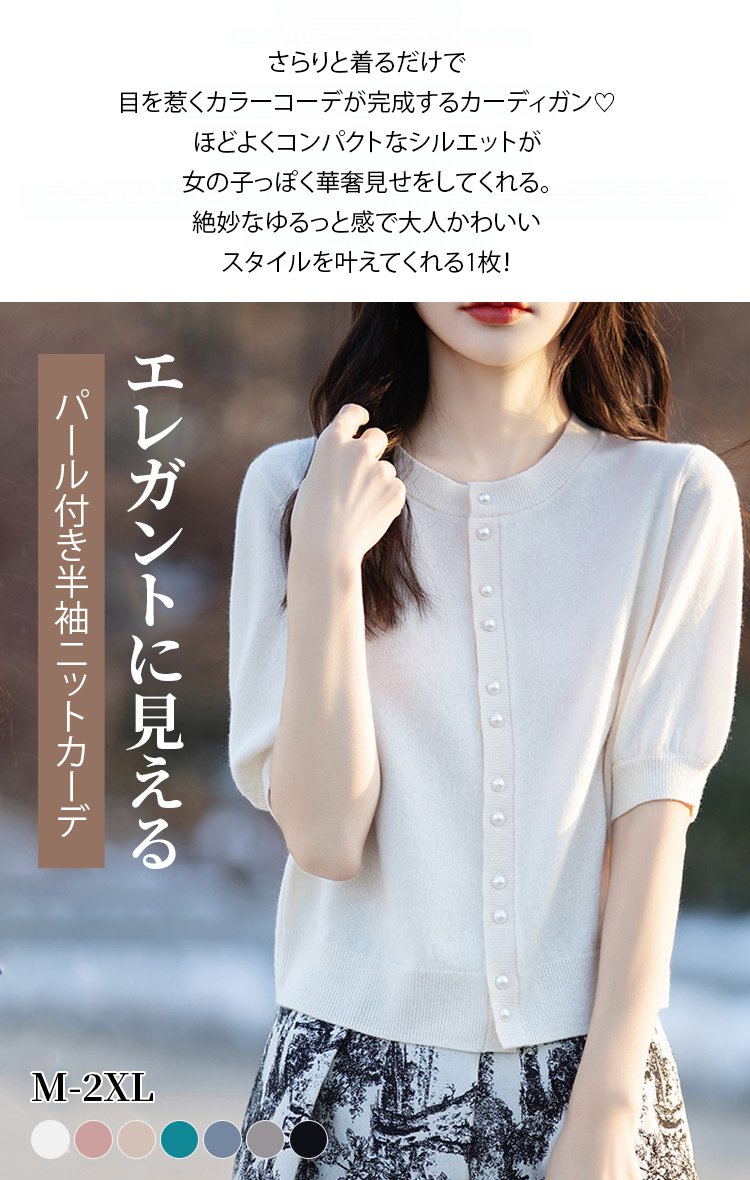 パール付き半袖ニットカーディガン