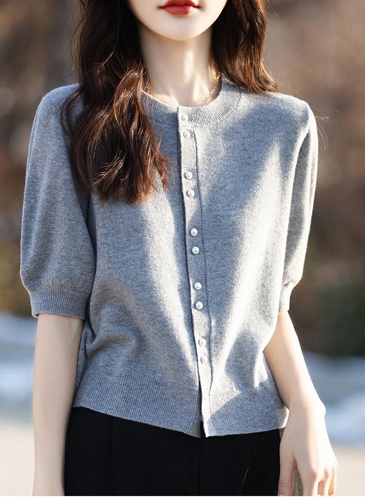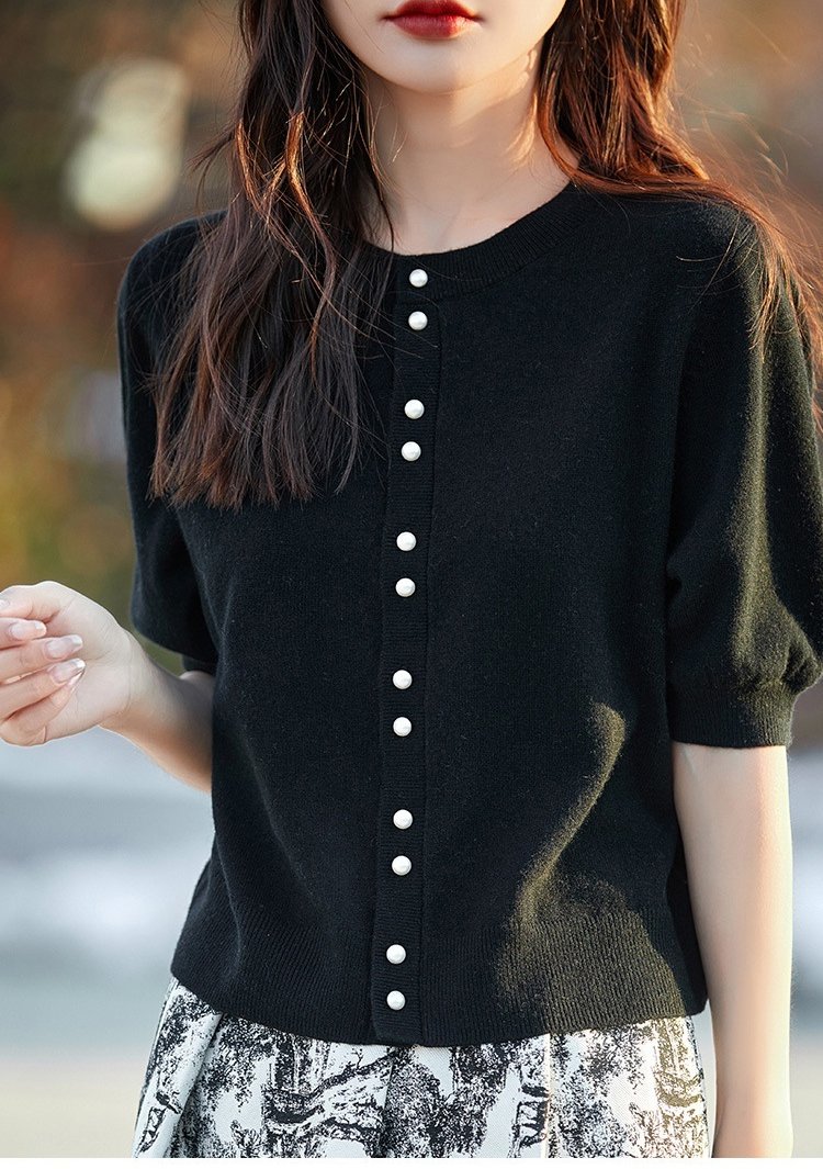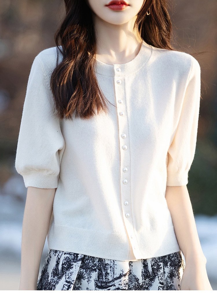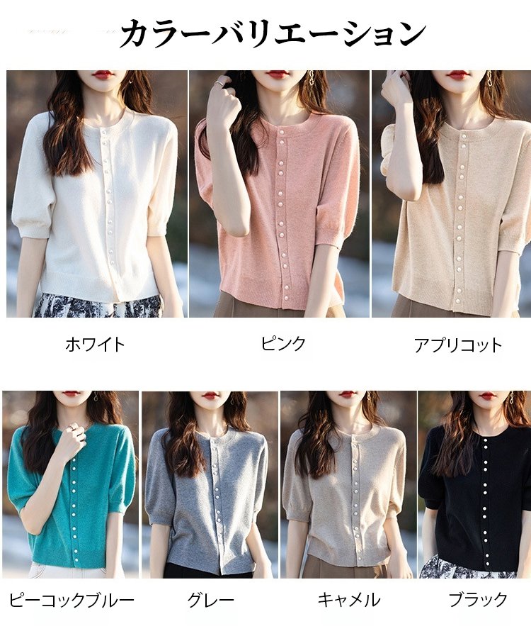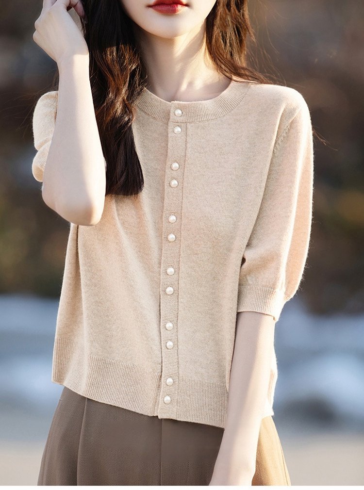 パール付き半袖ニットカーディガン