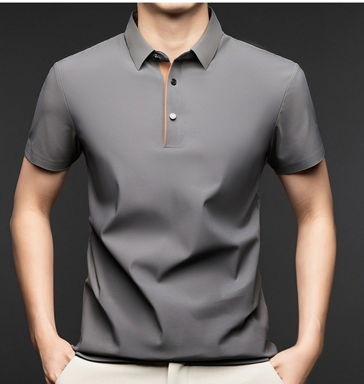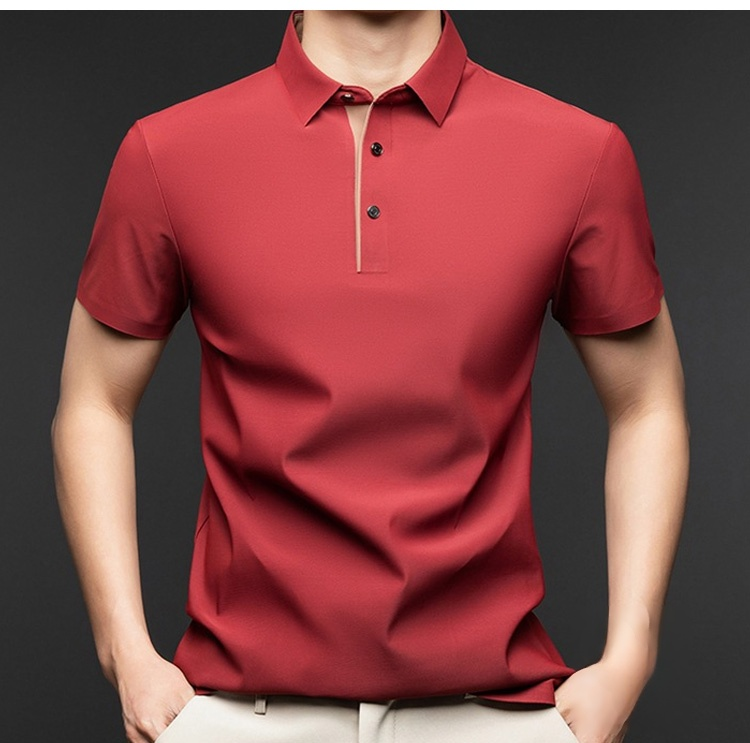 夏用メンズ半袖ポロシャツ アイスシルク涼感素材 4方向ストレッチ  薄手 シワ防止 アイロン不要 メンズ速乾襟付きTシャツ